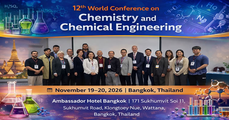The 12th World Conference on Chemistry and Chemical Engineering will take place on November 19–20, 2026, in Bangkok, Thailand. As part of a well-established international conference series, this event brings together chemists, chemical engineers, researchers, industry professionals, and academic leaders dedicated to advancing scientific discovery and engineering innovation across chemical sciences.