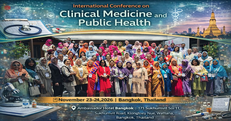 The International Conference on Clinical Medicine and Public Health will be held on November 23–24, 2026, in Bangkok, Thailand. This global healthcare conference brings together clinicians, medical researchers, public health experts, healthcare practitioners, academics, and policymakers committed to advancing clinical excellence and strengthening population health worldwide. The event serves as a collaborative platform to share high-impact research, exchange professional insights, and explore innovative strategies that improve healthcare delivery and public health outcomes.