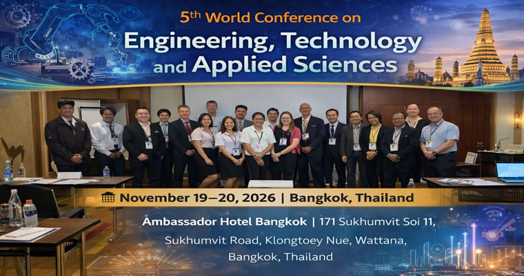 The 5th World Conference on Engineering, Technology and Applied Sciences, will be held on November 19–20, 2026, in Bangkok, Thailand. Now in its fifth consecutive year, this internationally recognized engineering conference continues to serve as a distinguished platform for researchers, engineers, scientists, innovators, and industry professionals committed to advancing applied science and technological progress.